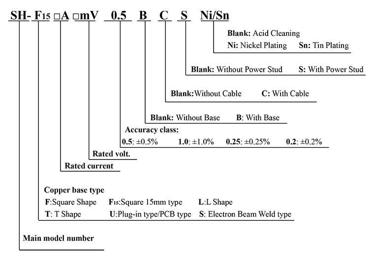 • .Temperature rise: Electrify the shunt with rated current for 2hr, test it after temperature rising stable, the temperature rise should be≤80K when the rated current under 100A; and should be ≤120K when the rated current higher than 100A.